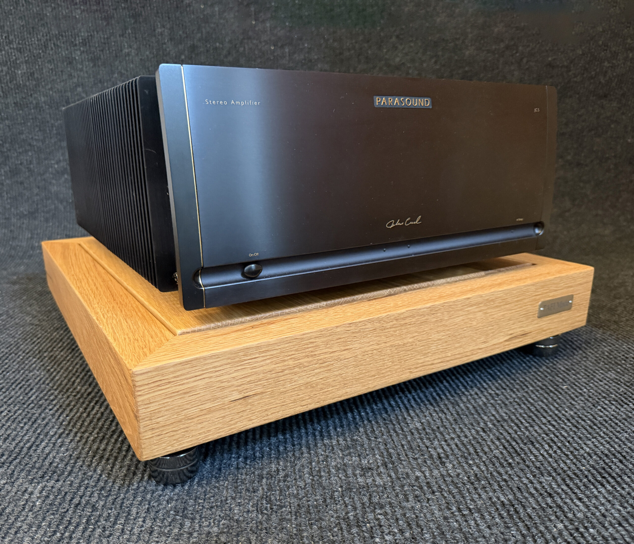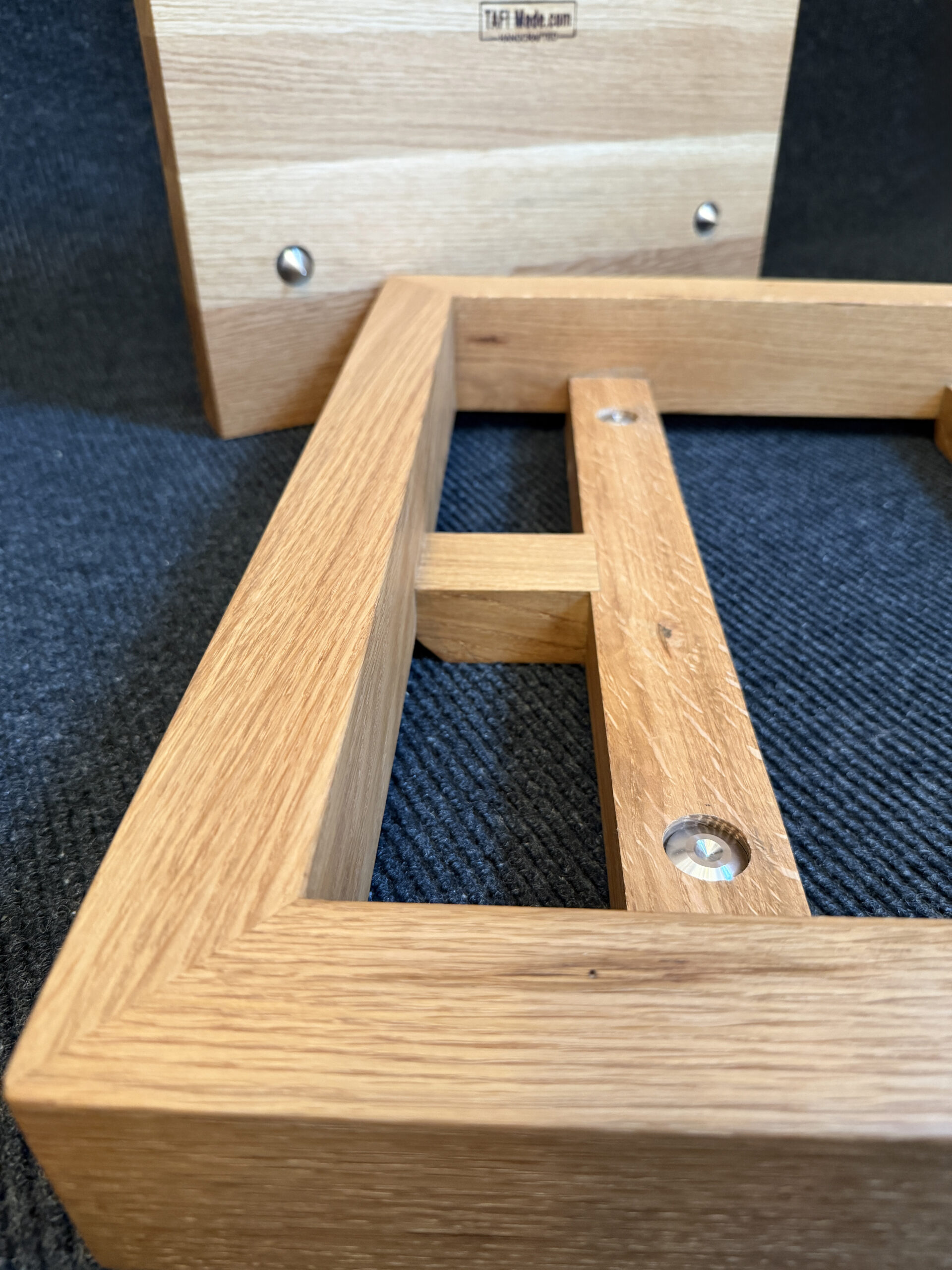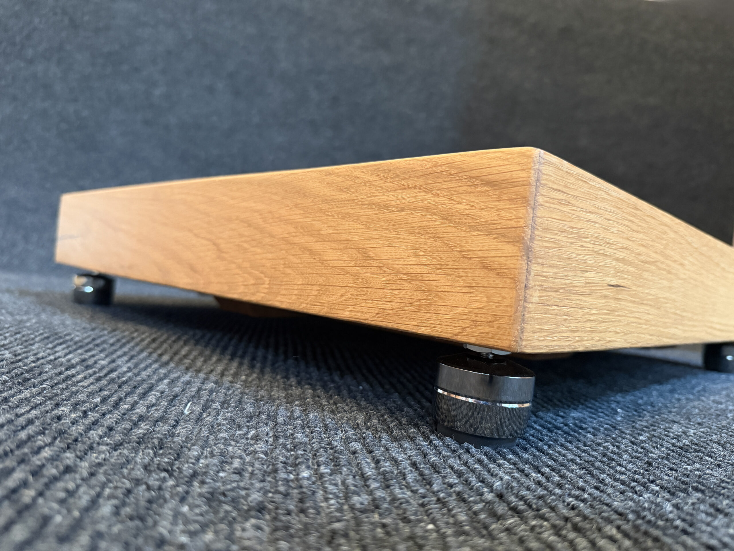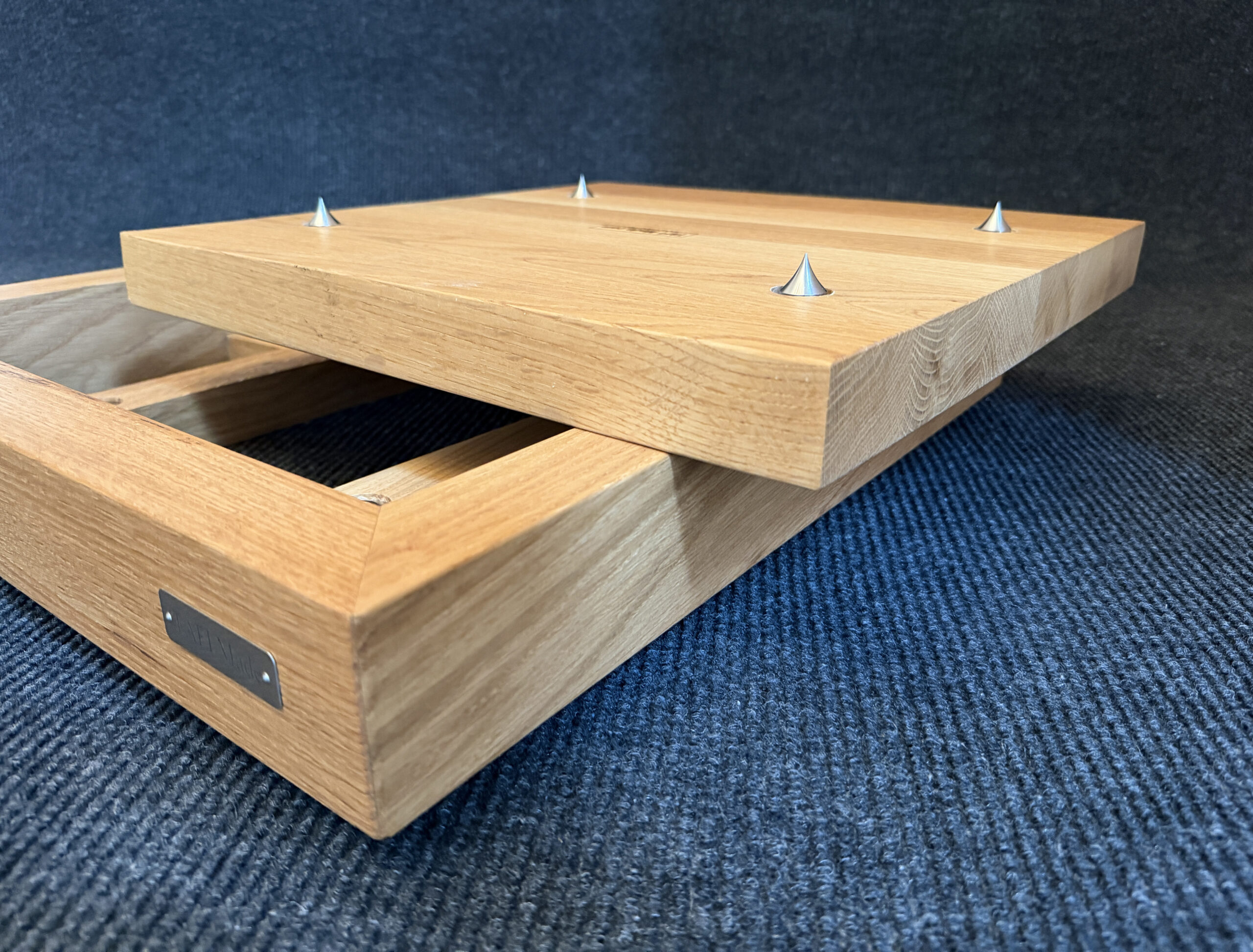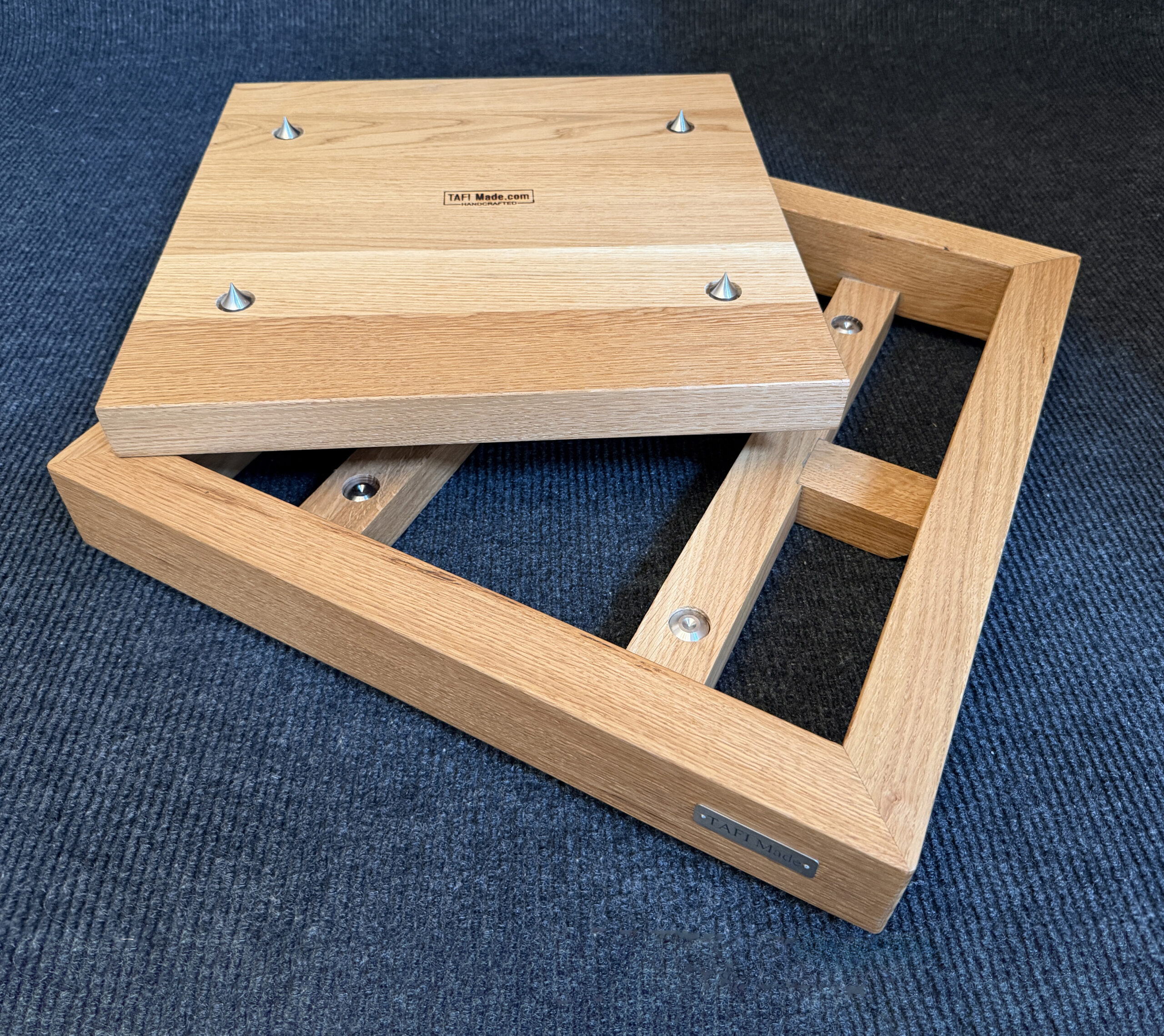 • Solid Frame. The outer frame is crafted from 2-inch-thick solid white oak, standing 3 inches high. White oak is prized for its density, stiffness and natural damping properties, making it an ideal material for a high-performance amplifier stand.