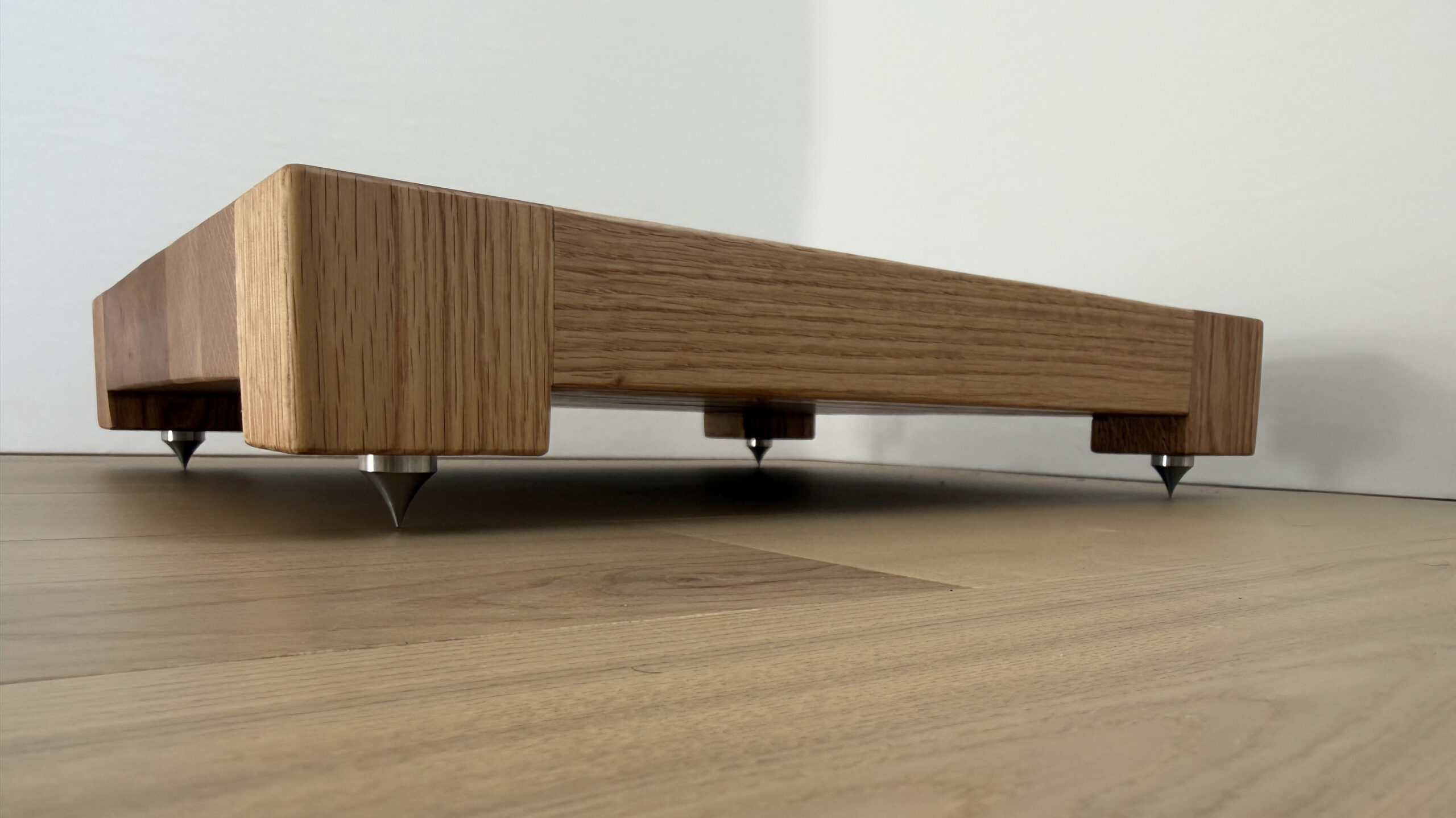 Crafted from solid white oak, DENALI features a substantial 1.75-inch-thick platform that provides exceptional mass and rigidity – critical for controlling vibration and improving sonic performance. White oak’s natural density helps suppress unwanted resonance while maintaining tonal integrity.